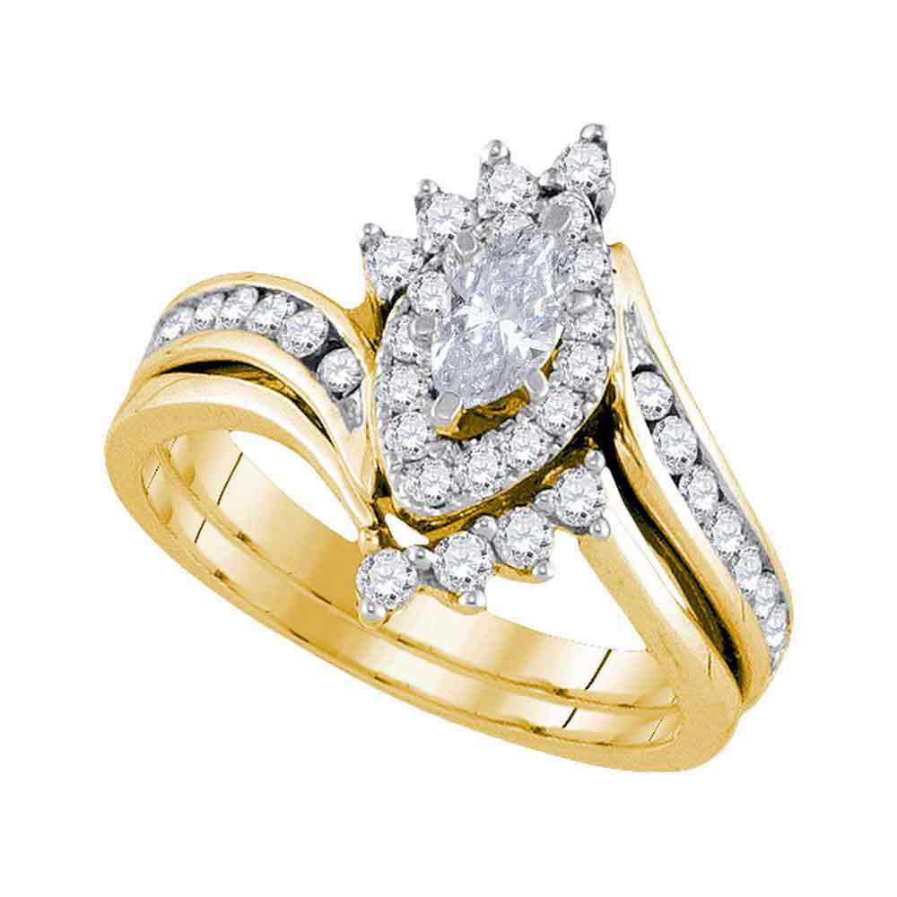 14kt Yellow Gold Marquise Diamond Bridal Wedding Engagement Ring Set 1.00 Ctw