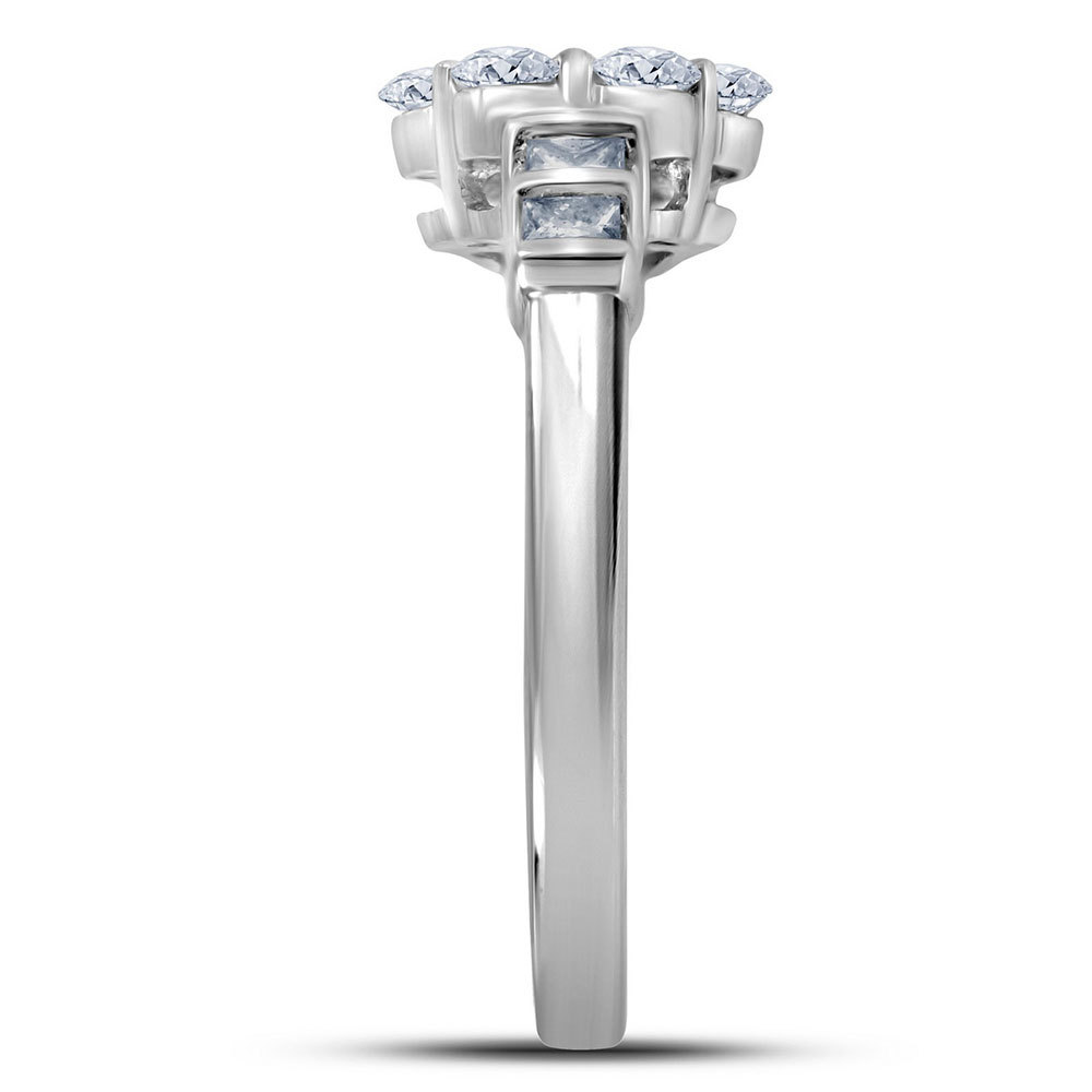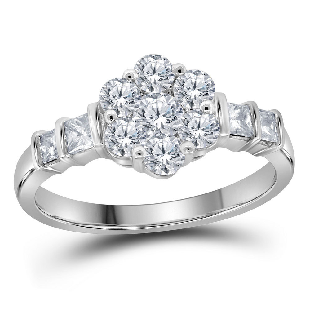 14kt White Gold Womens Round Diamond Flower Cluster Ring 1.00 Cttw