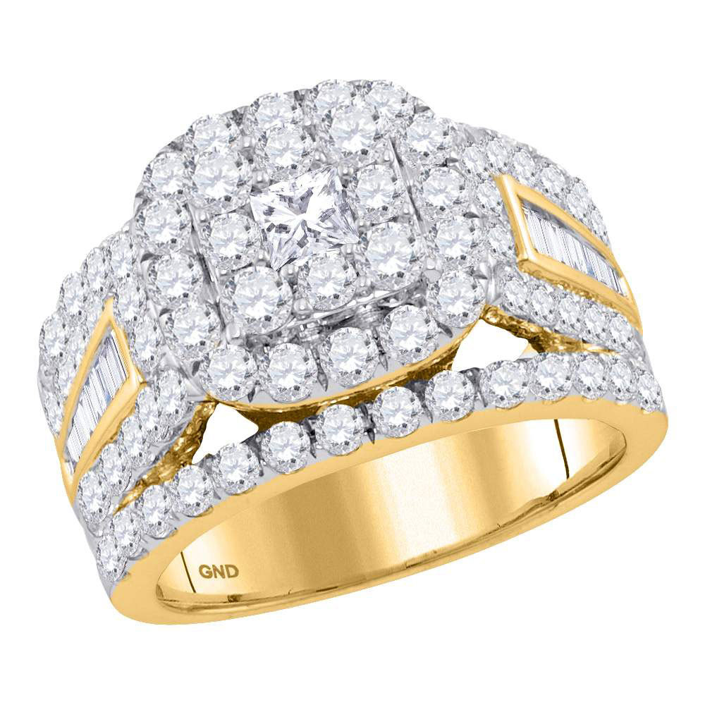 14kt Yellow Gold Womens Princess Diamond Solitaire Halo Bridal Wedding Engagement Ring 3.00 Cttw