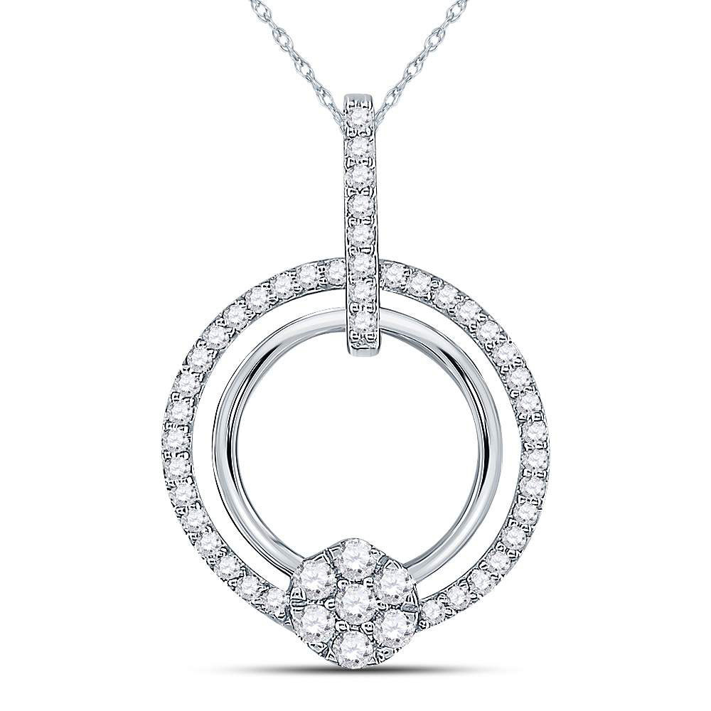 10kt White Gold Womens Round Diamond Circle Cluster Pendant 3/8 Cttw
