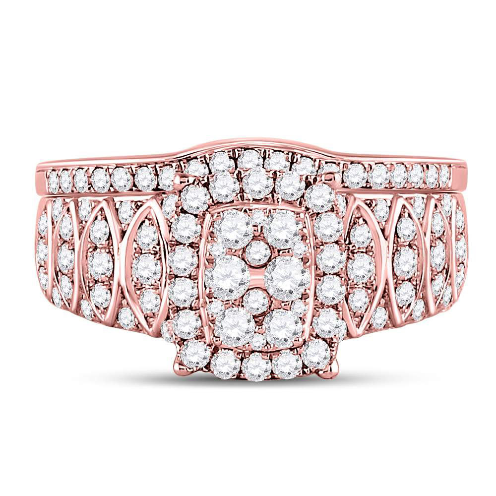 14kt Rose Gold Womens Round Diamond Vintage-inspired Bridal Wedding Engagement Ring Band Set 1-3/8 Cttw