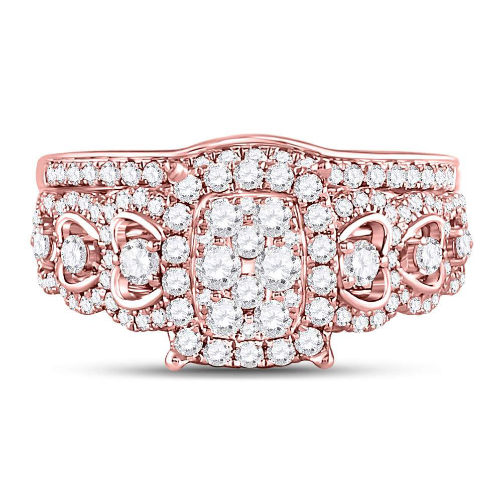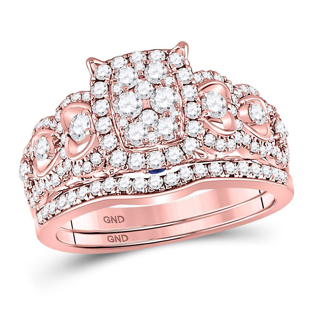 14kt Rose Gold Womens Round Diamond Vintage-inspired Rectangle Bridal Wedding Engagement Ring Band Set 1.00 Cttw