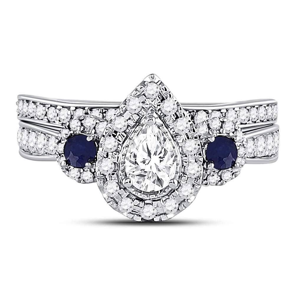 14kt White Gold Womens Pear Diamond Royal Sparkle Bridal Wedding Engagement Ring Band Set 1.00 Cttw