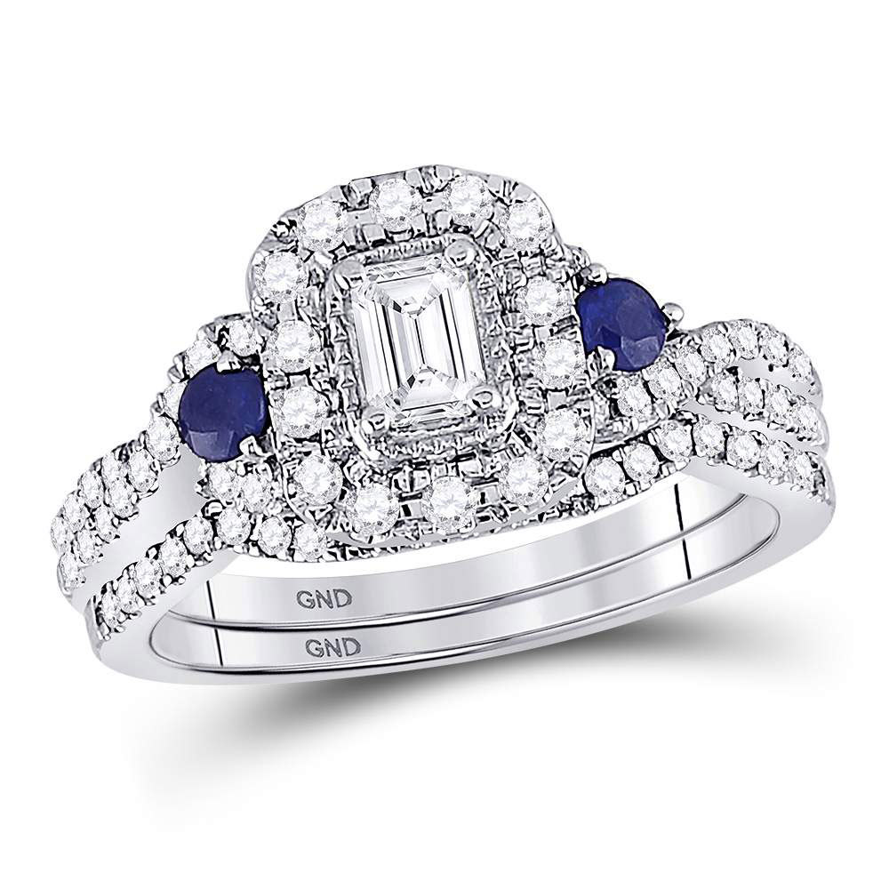 14kt White Gold Womens Emerald Diamond Royal Sparkle Bridal Wedding Engagement Ring Band Set 1.00 Cttw