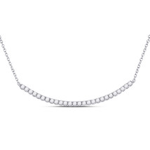 14kt White Gold Womens Round Diamond Curved Bar Necklace 3/4 Cttw
