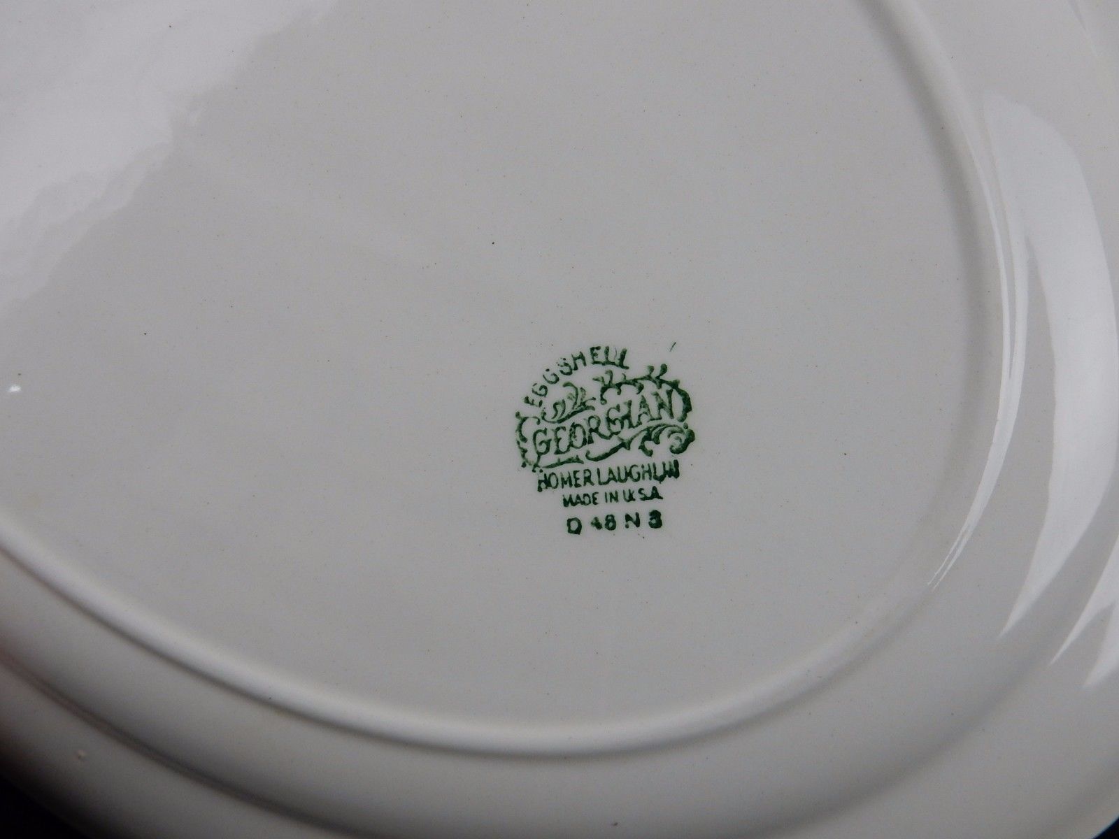 "Homer Laughlin Made in U.S.A." "Eggshell Georgian D48N3" stamp on the underside