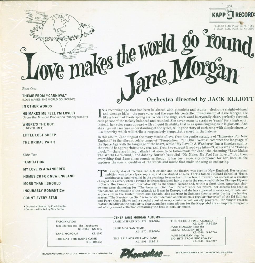 Jane Morgan - Love Makes The World Go Round - Kapp - KL 1250 - Canada NM/NM LP [