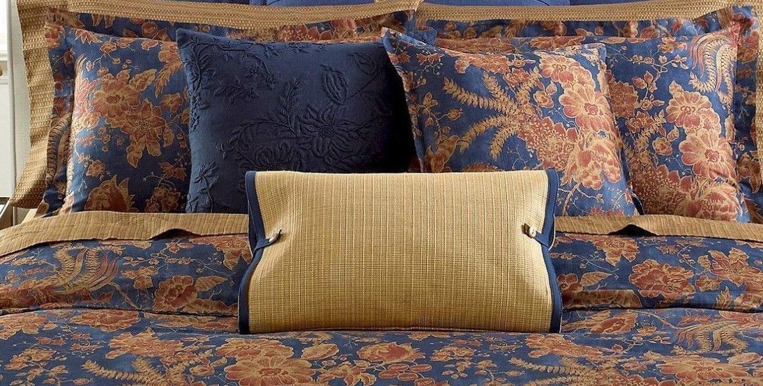 RALPH LAUREN ''BALI WOVEN STITCH" 1PC INDIGO/TAN DECO PILLOW 15"x 20"NWT RARE