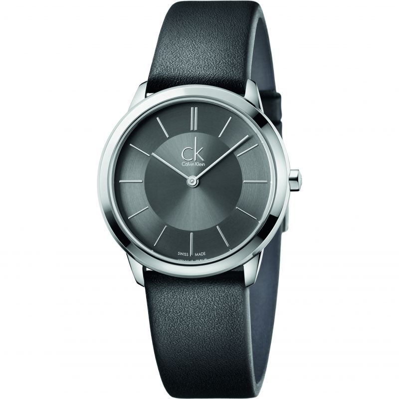 Calvin Klein K3M221C4 Minimal Black Leather Strap Womens Watch