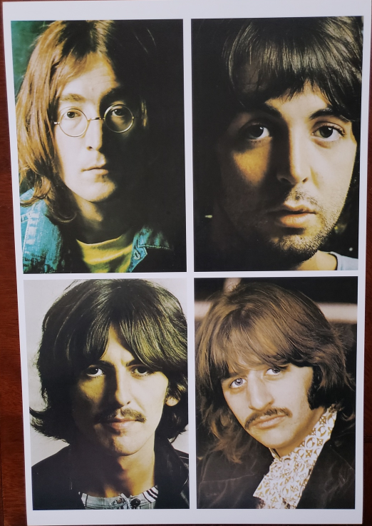 Cardstock Poster measures 12" x 18" shows individual pictures of each of the Beatles each measuring 8-1/4" x 5-1/2". Excellent condition.