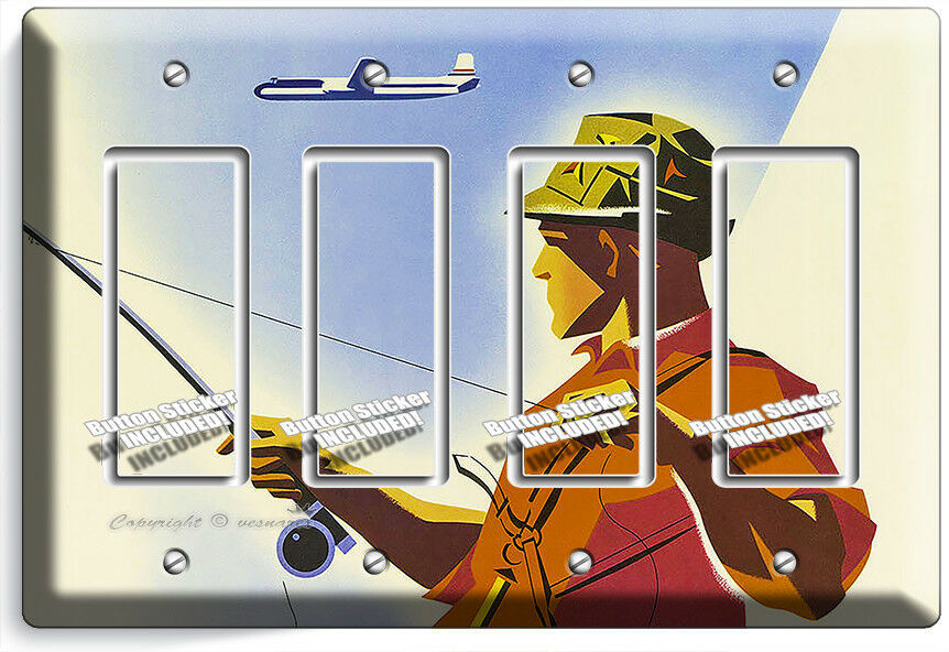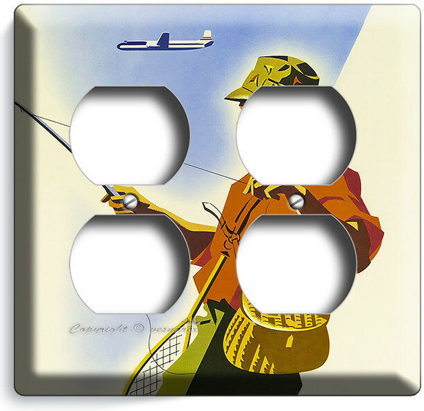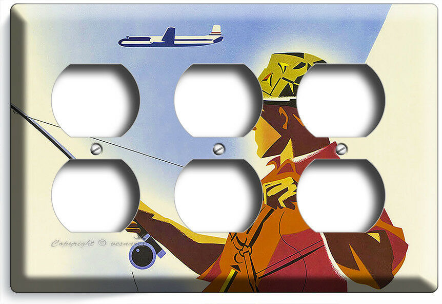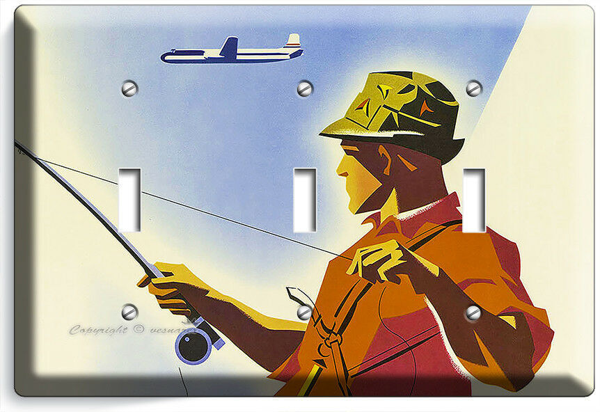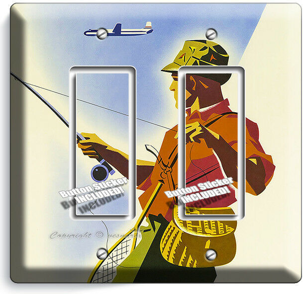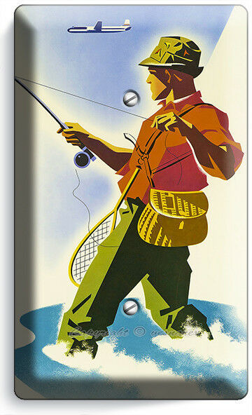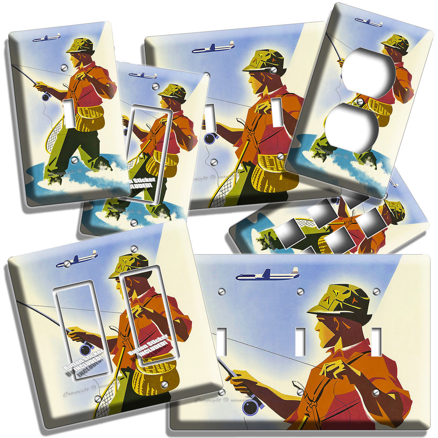 VINTAGE FISHING RETRO TRAVEL AD LIGHT SWITCH OUTLET PLATES ROOM LOG CABIN DECOR