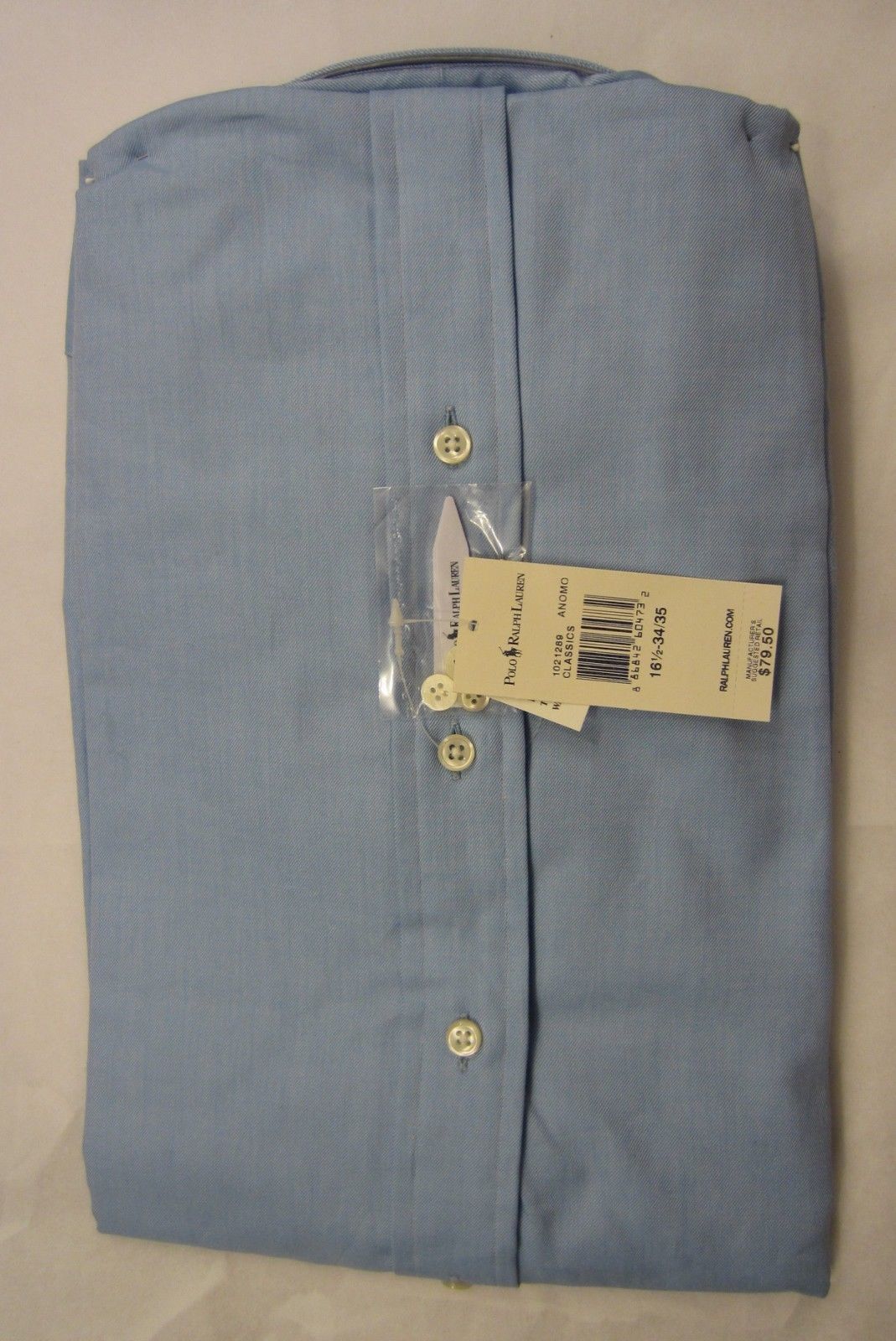 RALPH LAUREN POLO SIZE 16 1/2 34/35 MENS REGENT BLUE COTTON SHIRT $80 MSRP NWT
