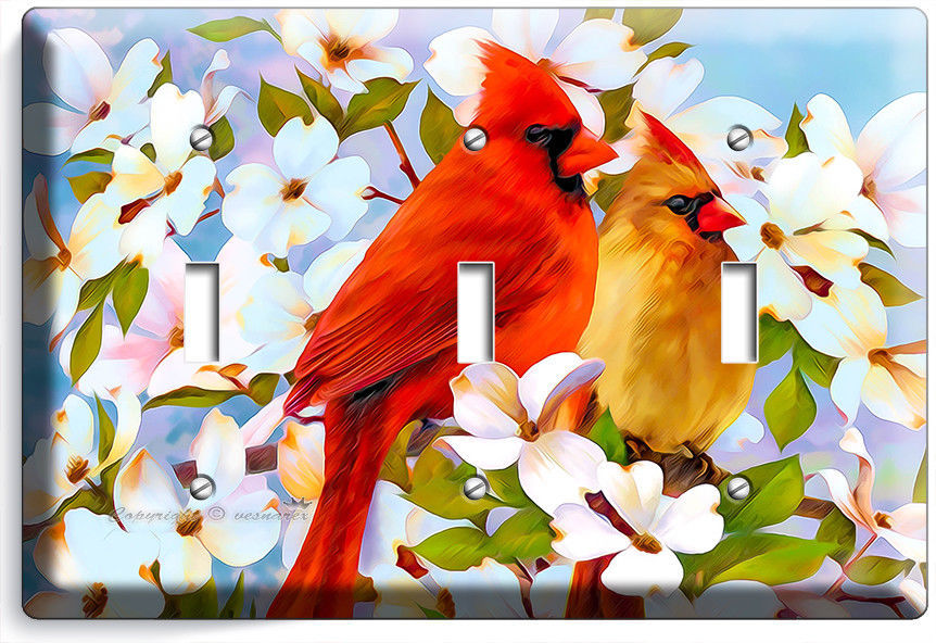 CARDINAL BIRDS MAGNOLIA FLOWERS TREE 3 GANG LIGHT SWITCH WALL PLATES ROOM DECOR