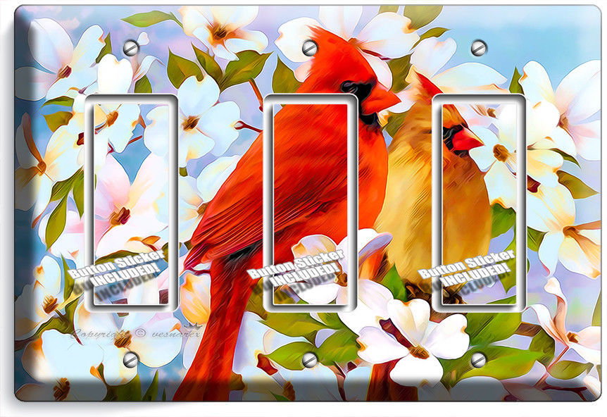 CARDINAL BIRDS MAGNOLIA FLOWERS TREE 3 GFCI LIGHT SWITCH WALL PLATES ROOM DECOR