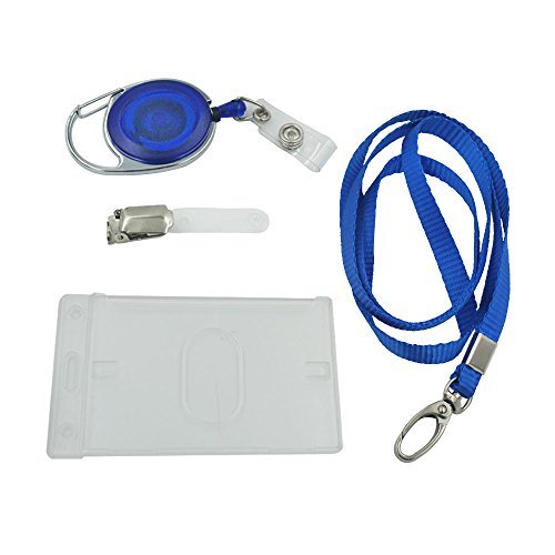 Bluemoona One Set - Neck Band Lanyard + ID Card Badge Holder Vertical + Retracta