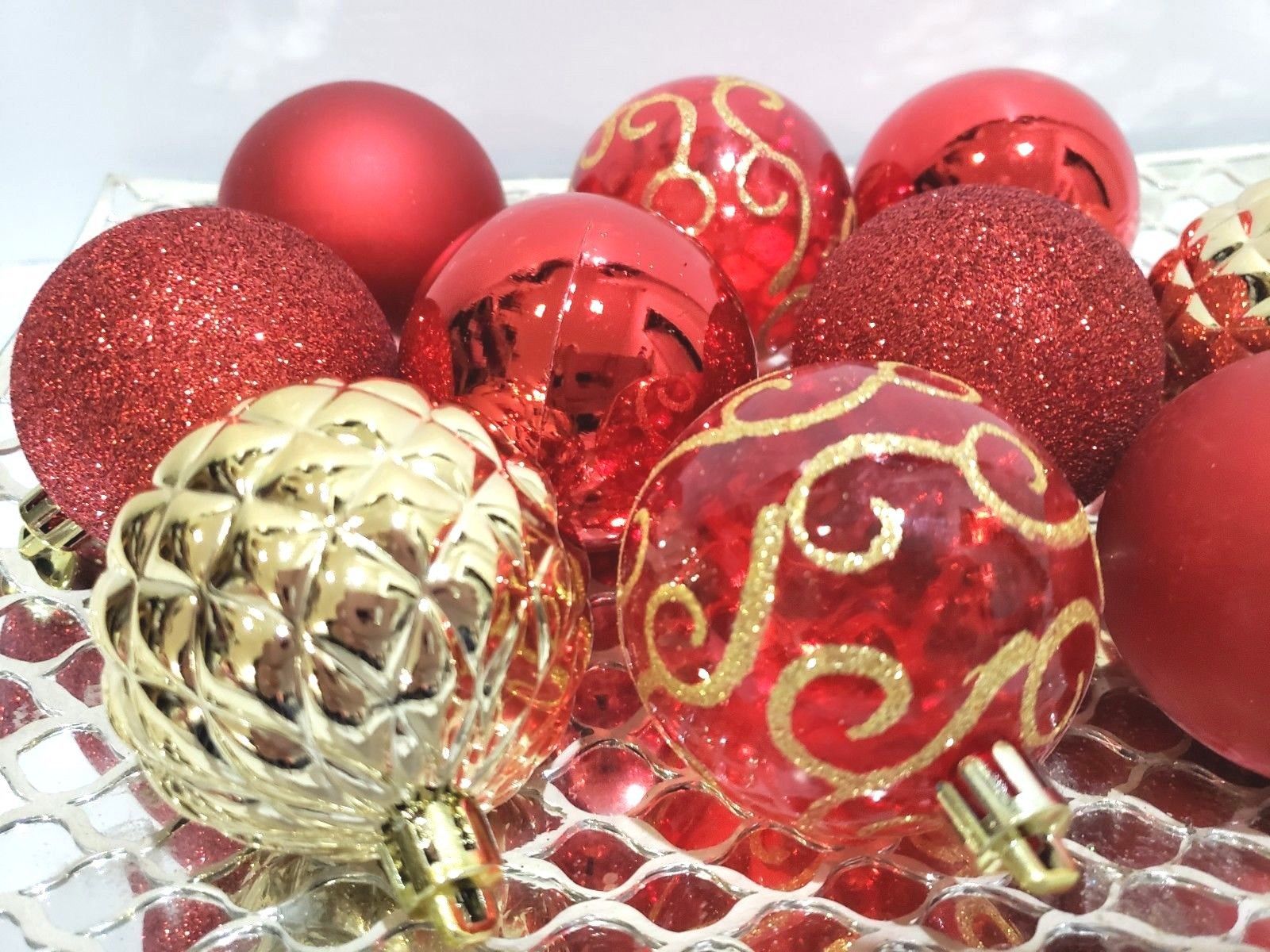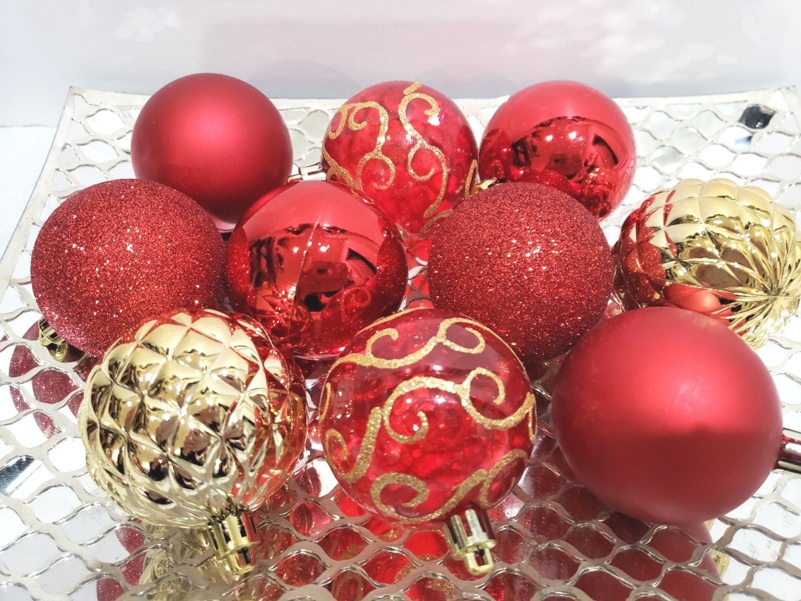 10 Christmas Red Gold Plastic Glitter Ball Ornaments 2.5"