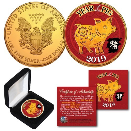 2019 Lunar New YEAR OF THE PIG 24K Gold Plated JFK Half Dollar Polychrome BOX