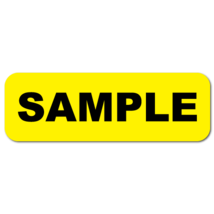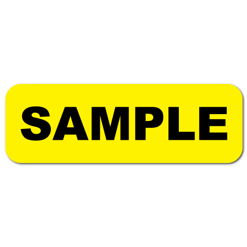 "SAMPLE" 1.5 x 0.5 Rectangle Black on Yellow Gloss, Roll of 500 Labels