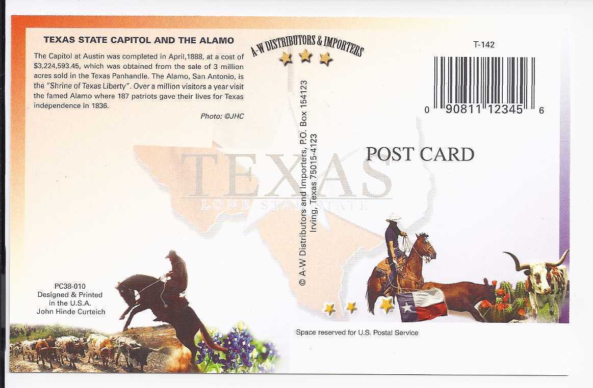 TEXAS STATE CAPITOL & THE ALAMO POSTCARD, New