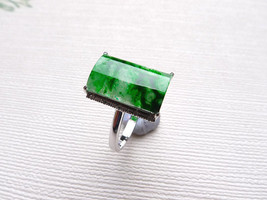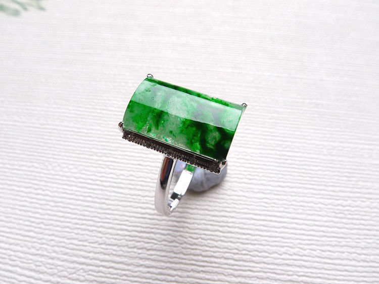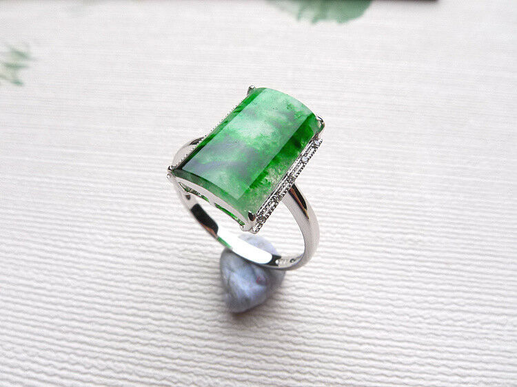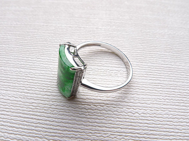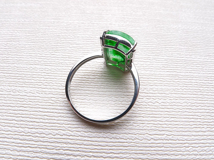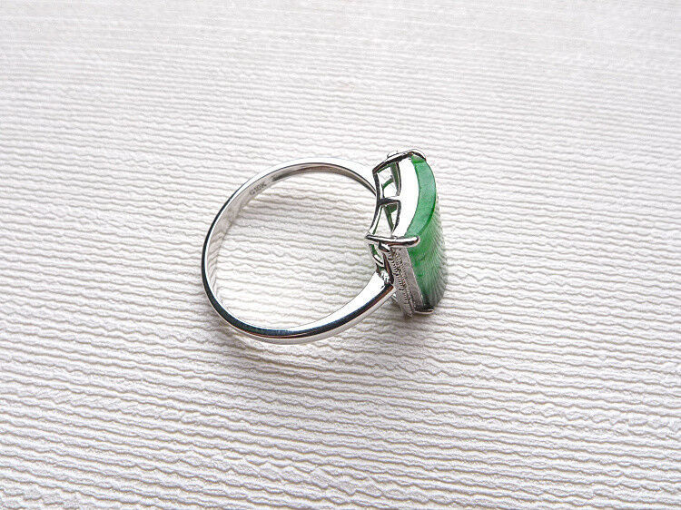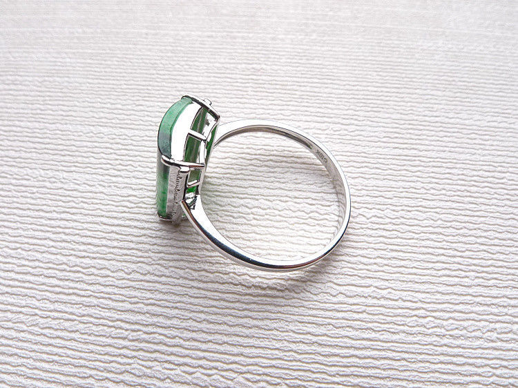 Chinese Natural Green Grade A Jadeite Jade Ring 18K White Gold 6.0
