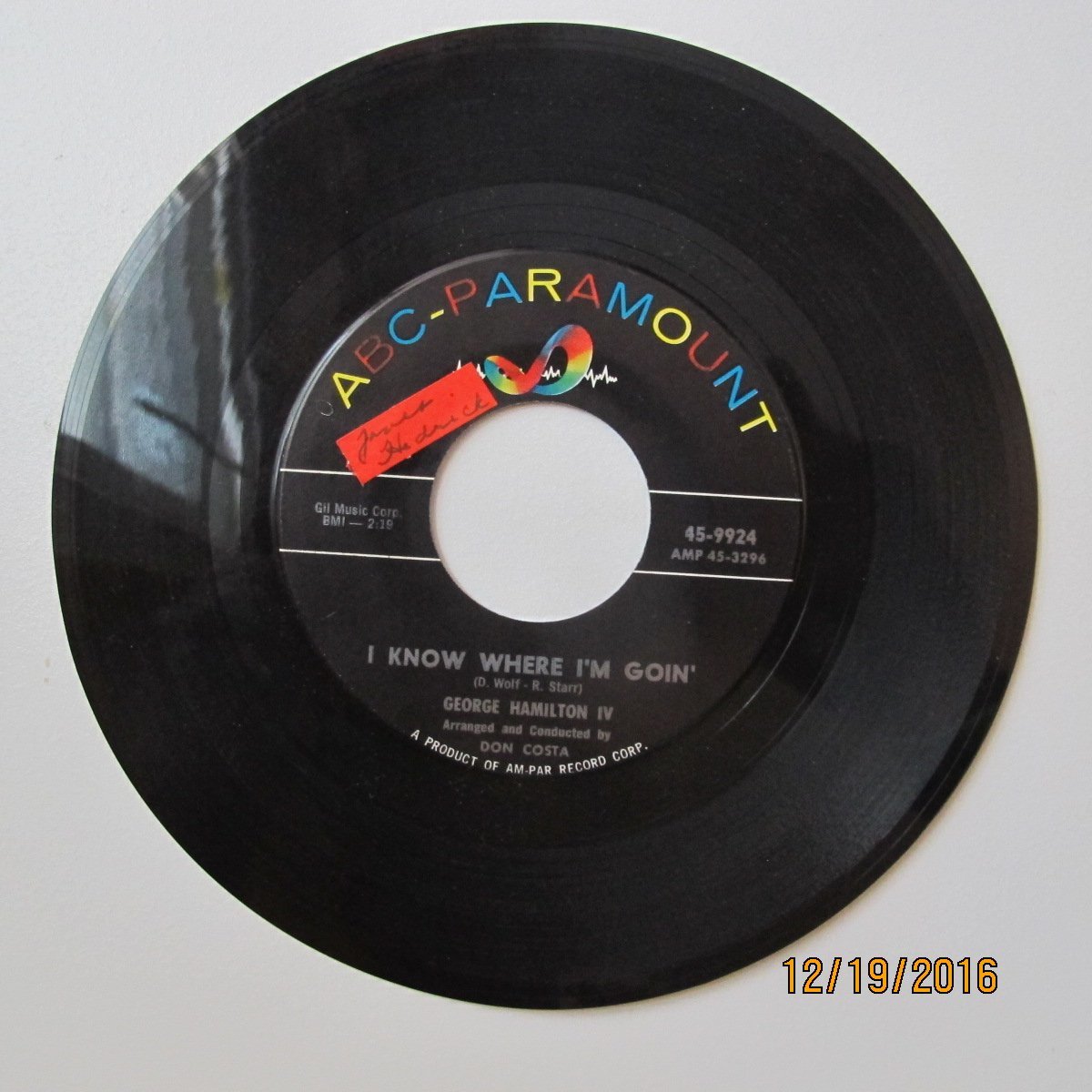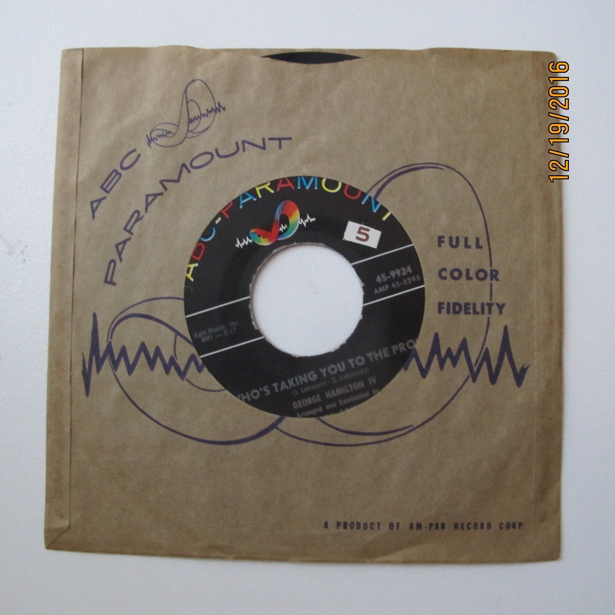 GEORGE HAMILTON IV 45 RPM WHO'S TAKING YOU TO THE PROM / I KNOW WHERE I'M GOIN'