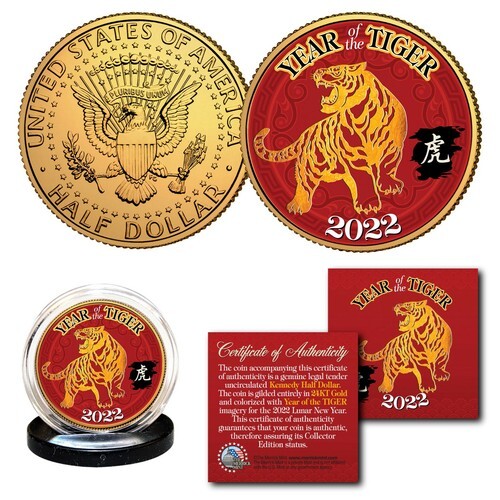 This high-quality Chinese Zodiac POLY-CHROME U.S. coin has been Gilded in Genuine 24 Karat Gold, and then enhanced with beautiful colorized images of the Chinese Zodiac using a unique painstaking exclusive multicolor authentic process. Each coin comes in a premium coin capsule with a matching Certificate of Authenticity to guarantee that your coin is authentic and recognized by every monetary authority around the world, assuring its Collector Edition status.