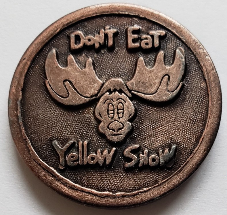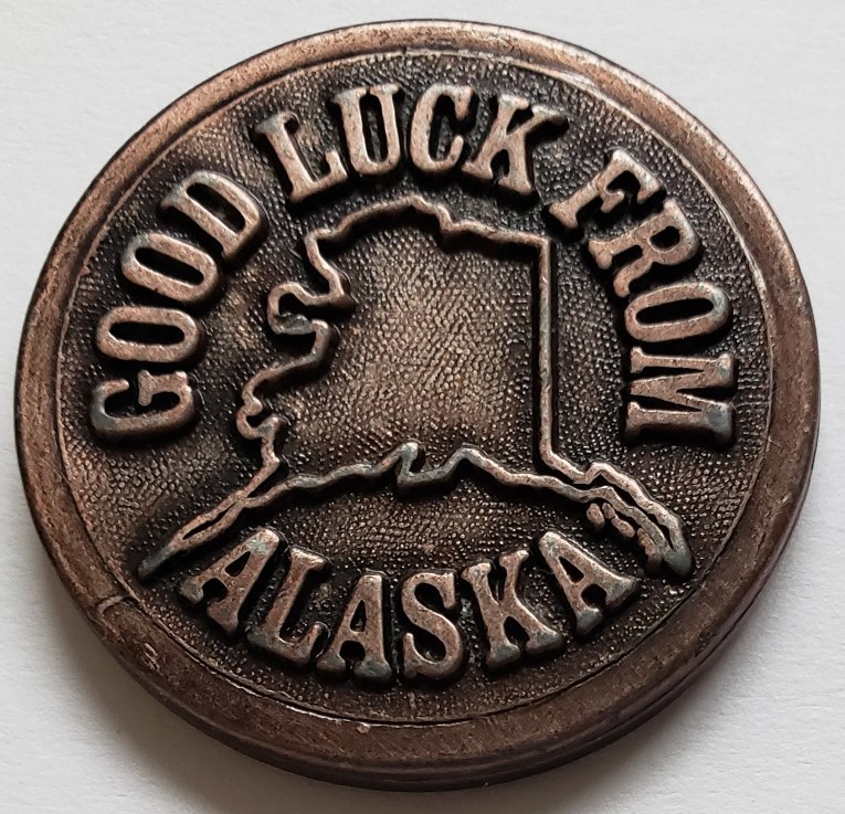 A delightful souvenir coin from Alaska: Good Luck From Alaska. Don't Eat Yellow Snow.