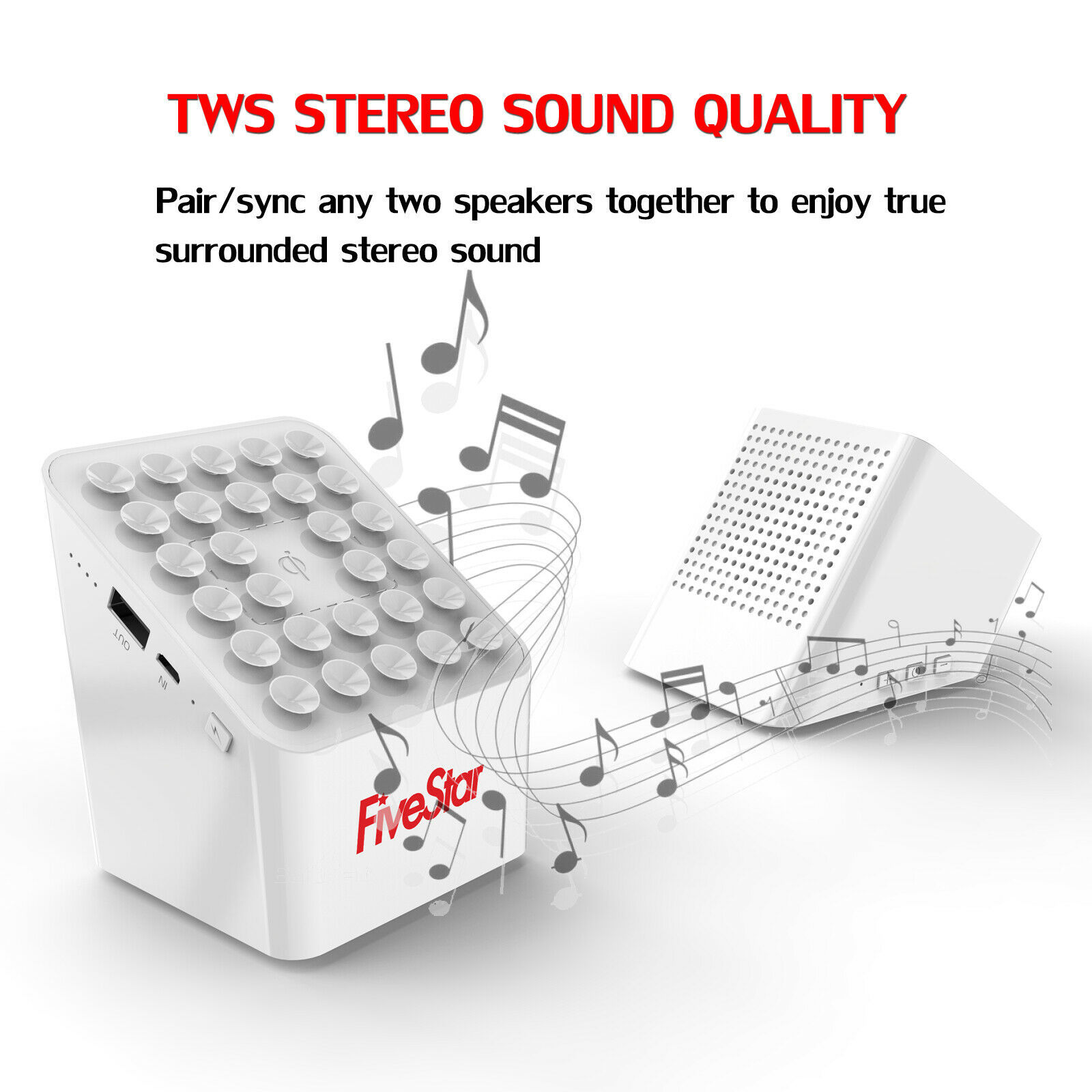 As A Mobile phone Stand--With 28 suction cups, strong suction and non-slip rubber design to ensure that the phone does not fall off, which protect the safety of mobile phones. Wireless : Support wireless charging or use as a charger dock. Never worry of battery low. Long Playing Time--Built-in 5000mah rechargeable battery allows you enjoy music for up to 50 hours and you can fully enjoy it without interruption while you are out, camping or travelling.