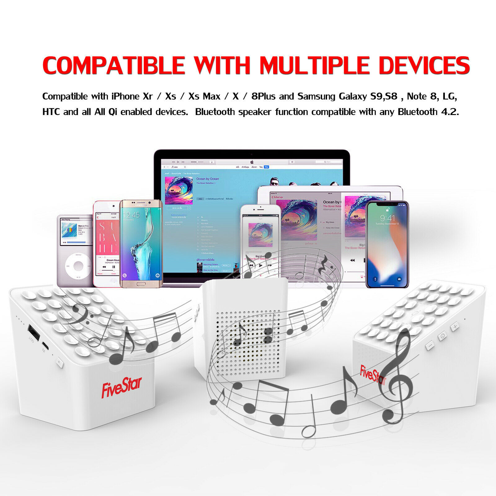 UNIVERSAL COMPATIBILITY: Compatible with most digital products with Bluetooth 4.2, and also works with multiple devices like for iPhone X, for iPhone 8/8 Plus, for Samsung Galaxy and other Qi-Enabled devices