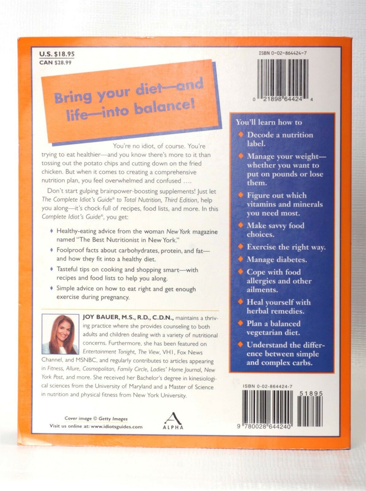 The Complete Idiot's Guide to Total Nutrition Book by Joy Bauer Paperback 3rd Ed