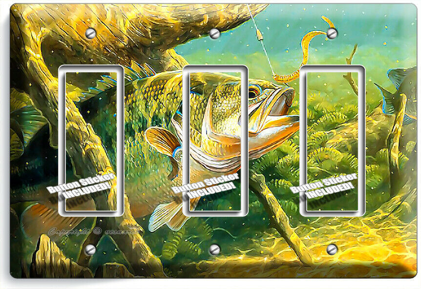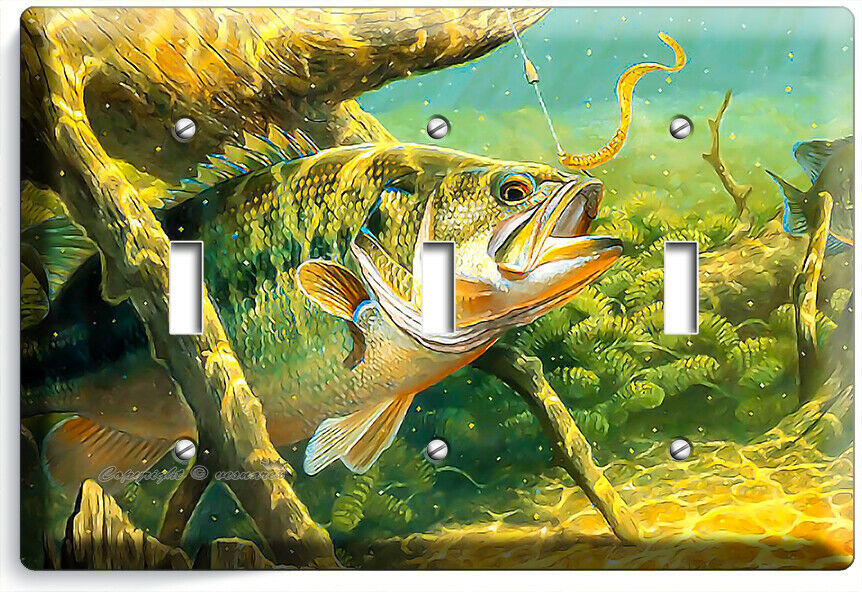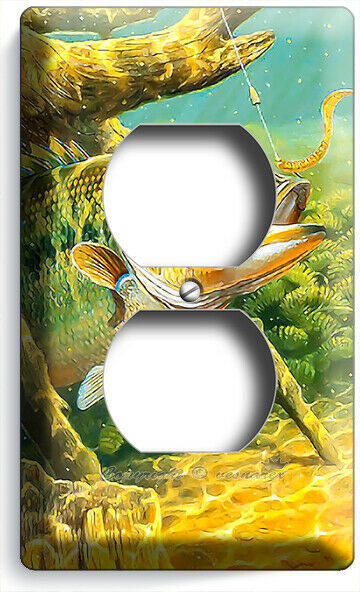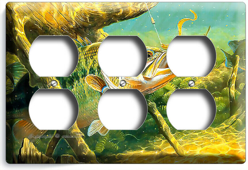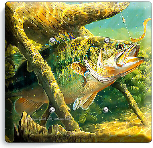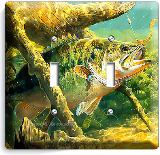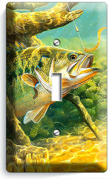 LARGEMOUTH BASS LURE LAKE FISHING LIGHT SWITCH OUTLET PLATE LOG CABIN ROOM DECOR