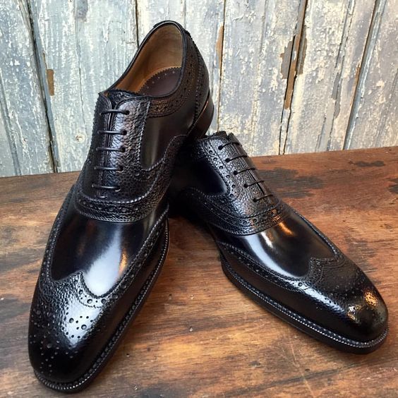 NEW Handmade Men's Black Color Leather Shoes, Men's Wing Tip Lace Up Formal Shoe