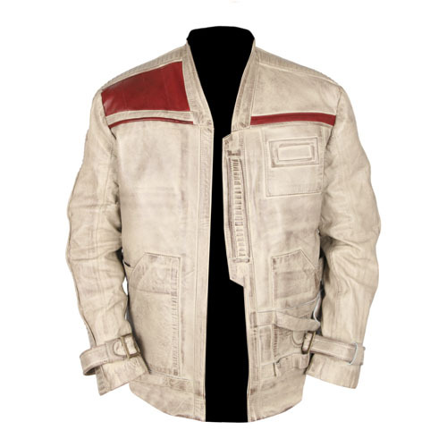 Star Wars Finn Distressed White Genuine Leather Jacket Waxed