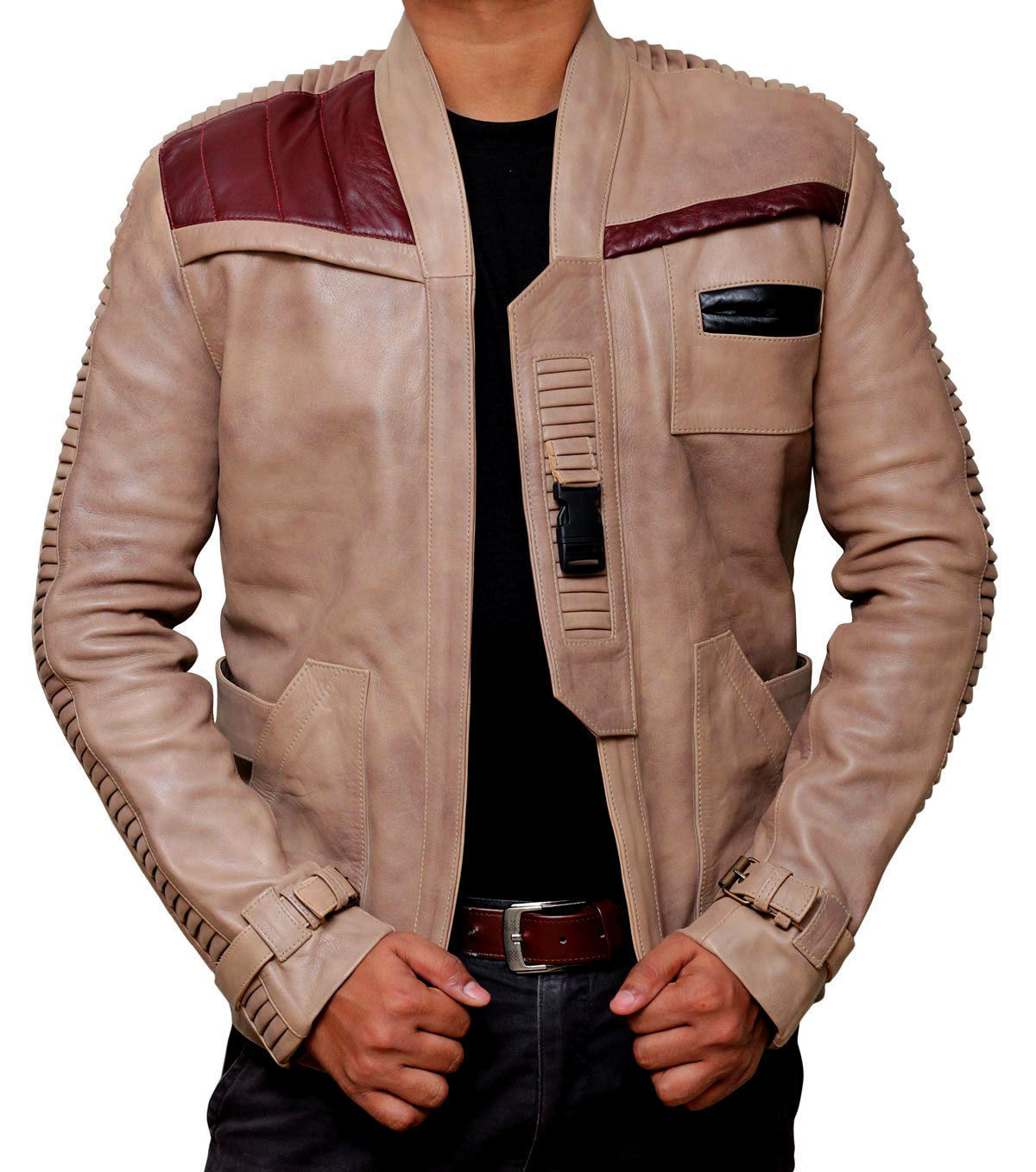 Star Wars Finn Jacket John Boyega Beige Real Leather Jacket For Mens