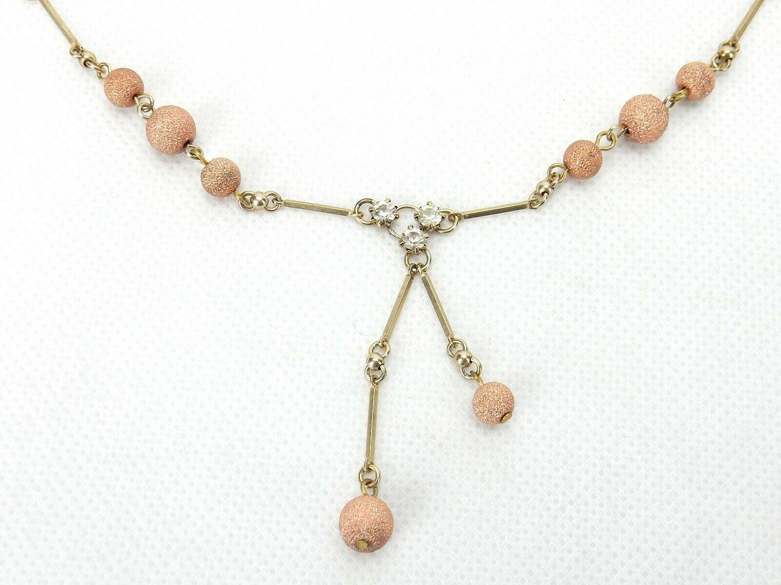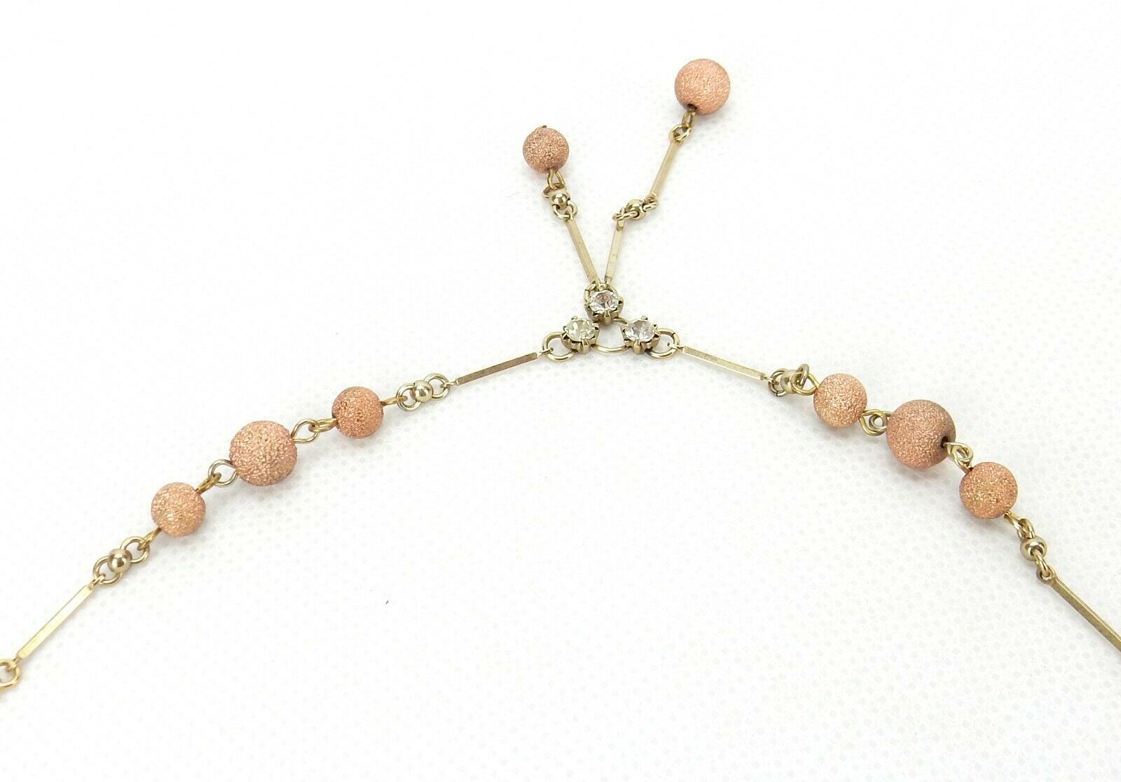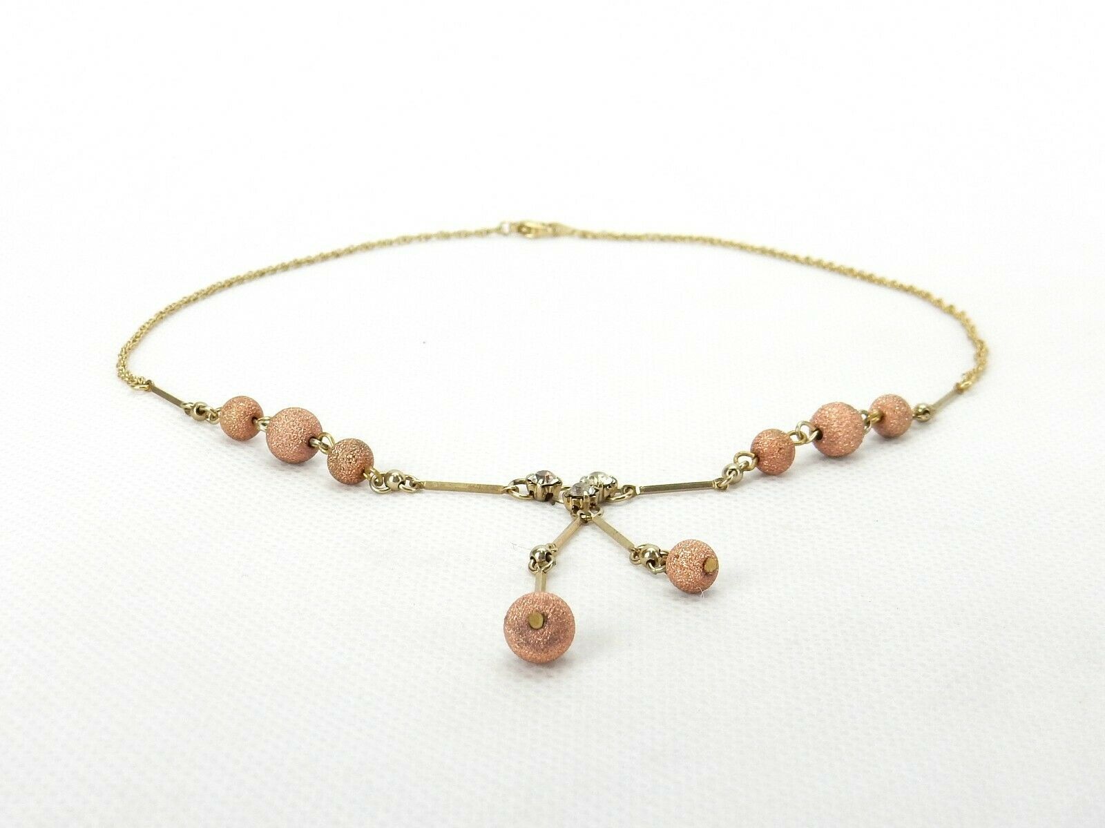 Rose Gold Look Ball Beads, 3 Clear Rhinestones in Center of Necklace