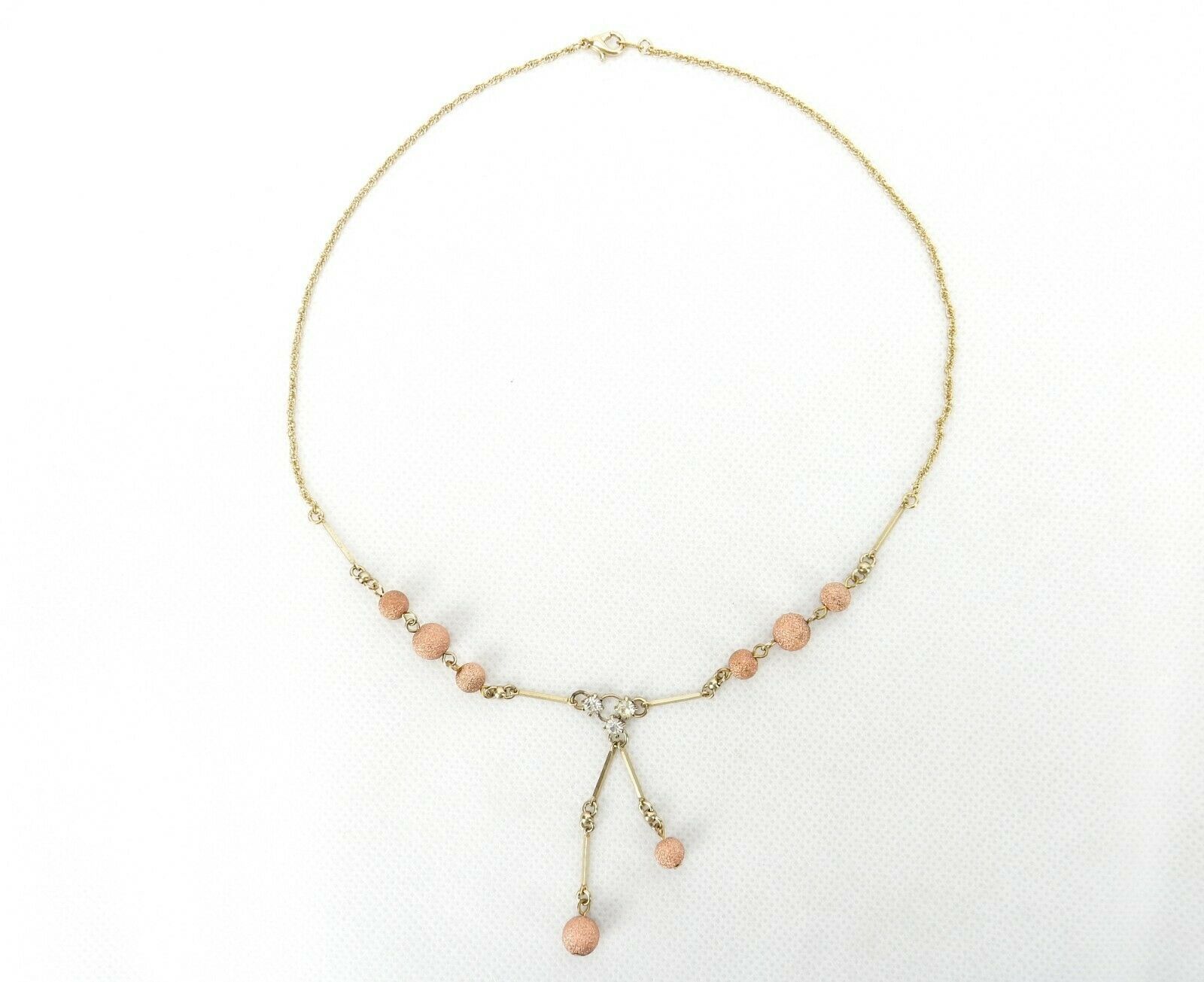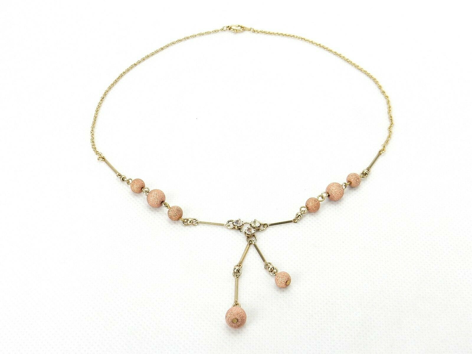 Vintage Costume Jewelry, Gold Tone Chain, Rose Gold Ball Beads, Lariat Necklace NK105 Vintage Necklace