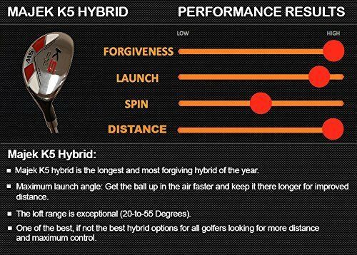 Remplacer votre difficile toute utilisation fer a avec le Majek K5 définie tous les hybrides fer pur génie du Golf : Majek Hybrid a été conçu conjointement par les membres du département de génie de l’UCLA. Cette relation unique et pure approche génie créent le Majek tous Hybrid Set fer. Avantages de l’hybride Majek :-plus de poids placé derrière le « Sweet Spot » - cavité plus profonde retour crée une Dispersion coup plus serrée, ce qui augmente la précision sur Off centre Hits. -Aérodynamisme crée une réduction de la traînée, qui mène à la tête de Club plus élevée accélère - large à mince couronne Design crée un CG bas pour promouvoir l’Angle de lancement plus élevé pour en savoir plus à Distance - manche en Graphite léger Premium favorise plus rapide vitesse de Swing pour une plus grande Distance. -Noir couronne et flèche marqueurs Make alignement facile et élimine l’éblouissement. Compagnie de soutien A des locaux : Votre Custom Made Majek Golf hybride est assemblé à la main à Riverside, en Californie et livré directement à votre porte.