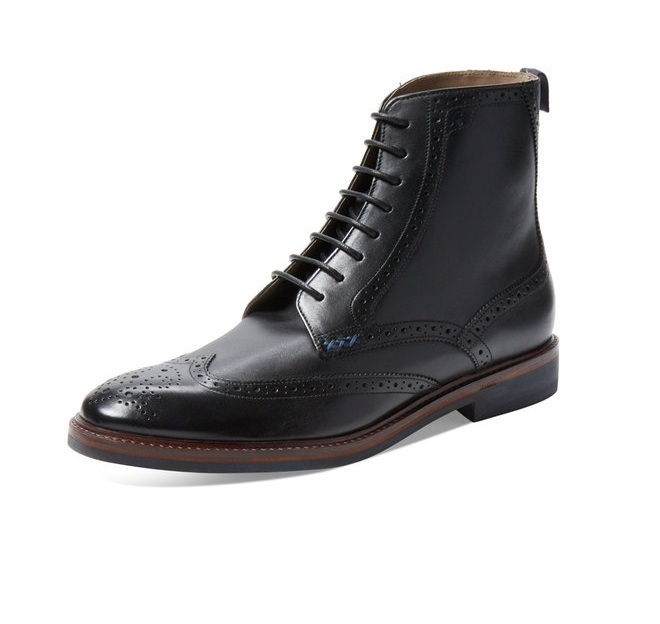 NEW Handmade Men's brogue wingtip lace up boots, Men wingtip black leather boot