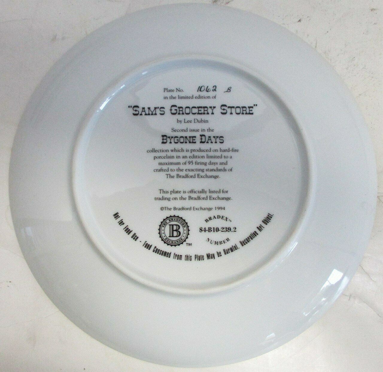 "Sam's Grocery Store" the first issue of the limit edition collector plates titled the "Bygone Days" Plate No.1060B