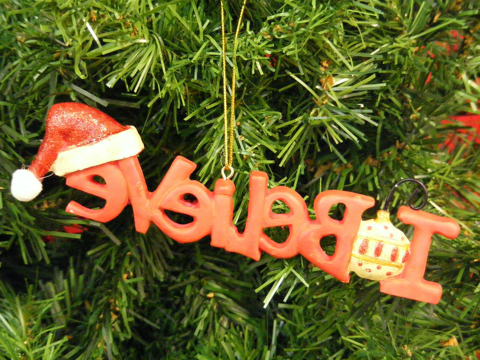KURT S. ADLER RESIN "I BELIEVE" SIGN CHRISTMAS TREE ORNAMENT