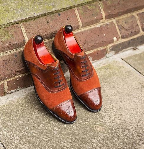 Handmade Men brown oxford leather and suede shoes. men formal leather shoes