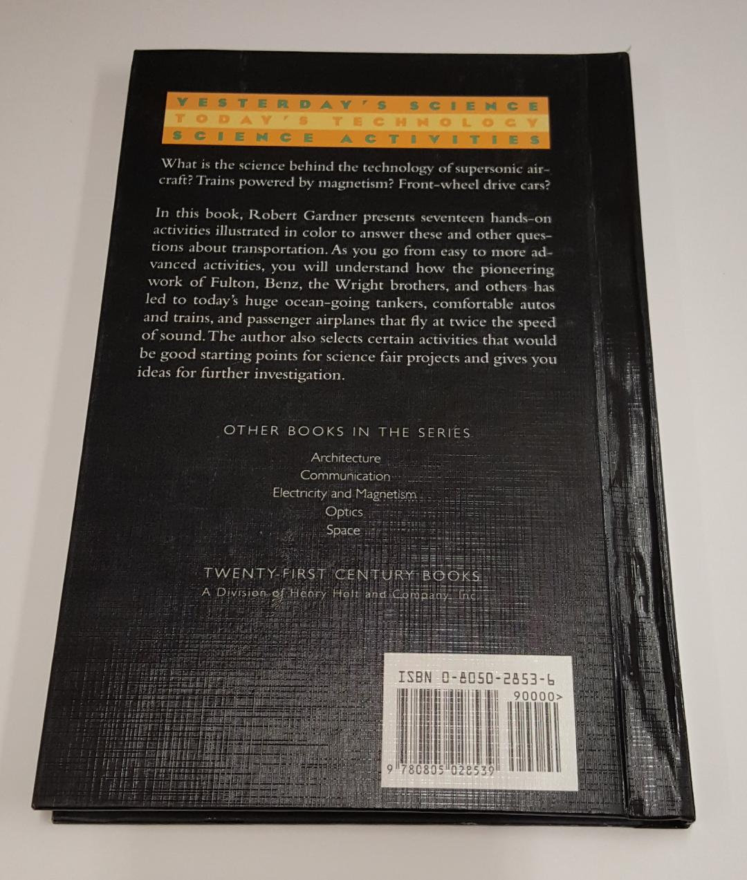 Transportation (Yesterday's Science, Today's Technology) by Robert Gardner. Drawings by Doris Ettlinger. Guiding the reader through the history of transportation from the invention of the wheel to the science of modern aviation, seventeen activities offer fascinating learning experiences and show how early scientific discoveries led to current forms of transportation.