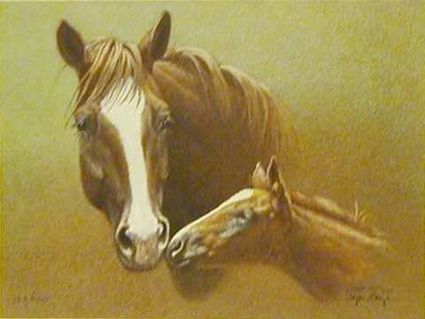 Product description: A Lit'l Attention is a limited edition print by Wayne Baize. This print has been personally signed by the artist. Baize is very well known for his western scenes. This print pictures a cute little colt nuzzling up to its mother ? trying to get some attention from her. Baize manages to capture at the same time the beauty of the horses and the feel of the mother/child relationship. Image size is 12" by 15". Overall size is 16? x 20?. The 500 print edition was published by Fenton?s Press in 1985. About the Artist - Wayne Baize has shown an affinity for art since his early days in public school. His first private art teacher was Sarah McDonald, a friend of artist Frank Tenney Johnson. After high school graduation, Wayne set up a table at Luskey?s Western Store in Abilene where he commissioned doing portraits of people and their animals. Words of praise for Baize's work soon spread along the local grapevine, prompting Brad Thompson to offer Baize his first one-man show in Stephenville, Texas. The show was a sellout and provided confidence that Baize could make a living as an artist. Baize is known for his ability to accurately portray a horse?s muscling and structure. Wayne and Ellen?s 4 children and their horses are also often depicted in Wayne?s paintings. In the late 80s, Baize shifted his focus away from mixed media and pencil drawings and started putting his main efforts into oil paintings. That transition into oil painting was encouraged by the prestigious Cowboy Artists of America and Wayne was invited to become a member of the CAA in 1995. Baize considers this to be the highest honor that he could obtain in his art career. Other honors include the silver medal award for drawings at the 1997 Cowboy Artist Show in Phoenix, Arizona and he was awarded the American Cowboy Culture Award for 2004. Baize?s paintings and drawings have graced the covers of magazines including The Quarter Horse Journal, Western Horseman, and The Texas Hereford.