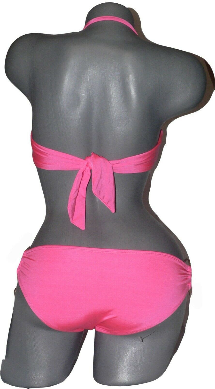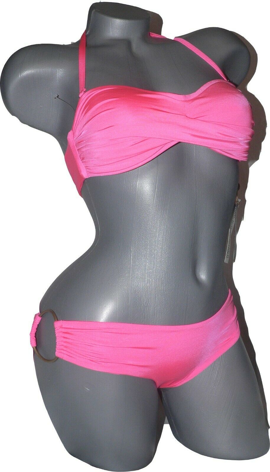 NWT VITAMIN A 4 S swimsuit bikini neon pink 2PC bandeau brass rings on hips