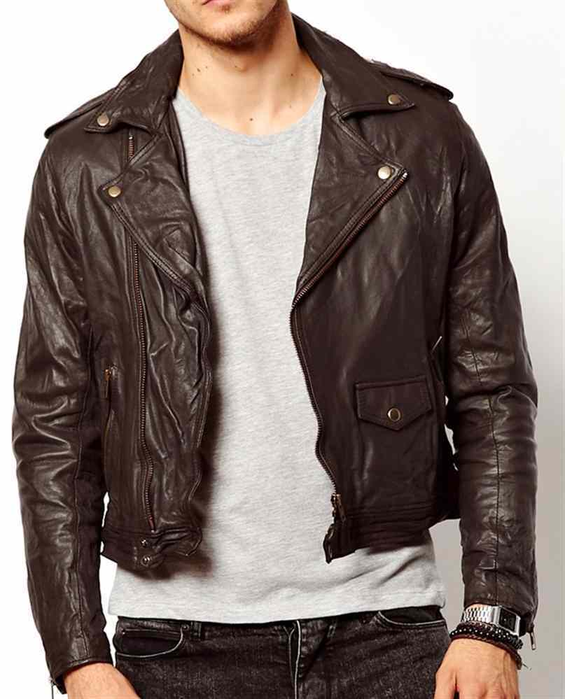 New Handmade Men's Brown Leather Jacket, Slimfit Biker Brown Genuine Jacket 201