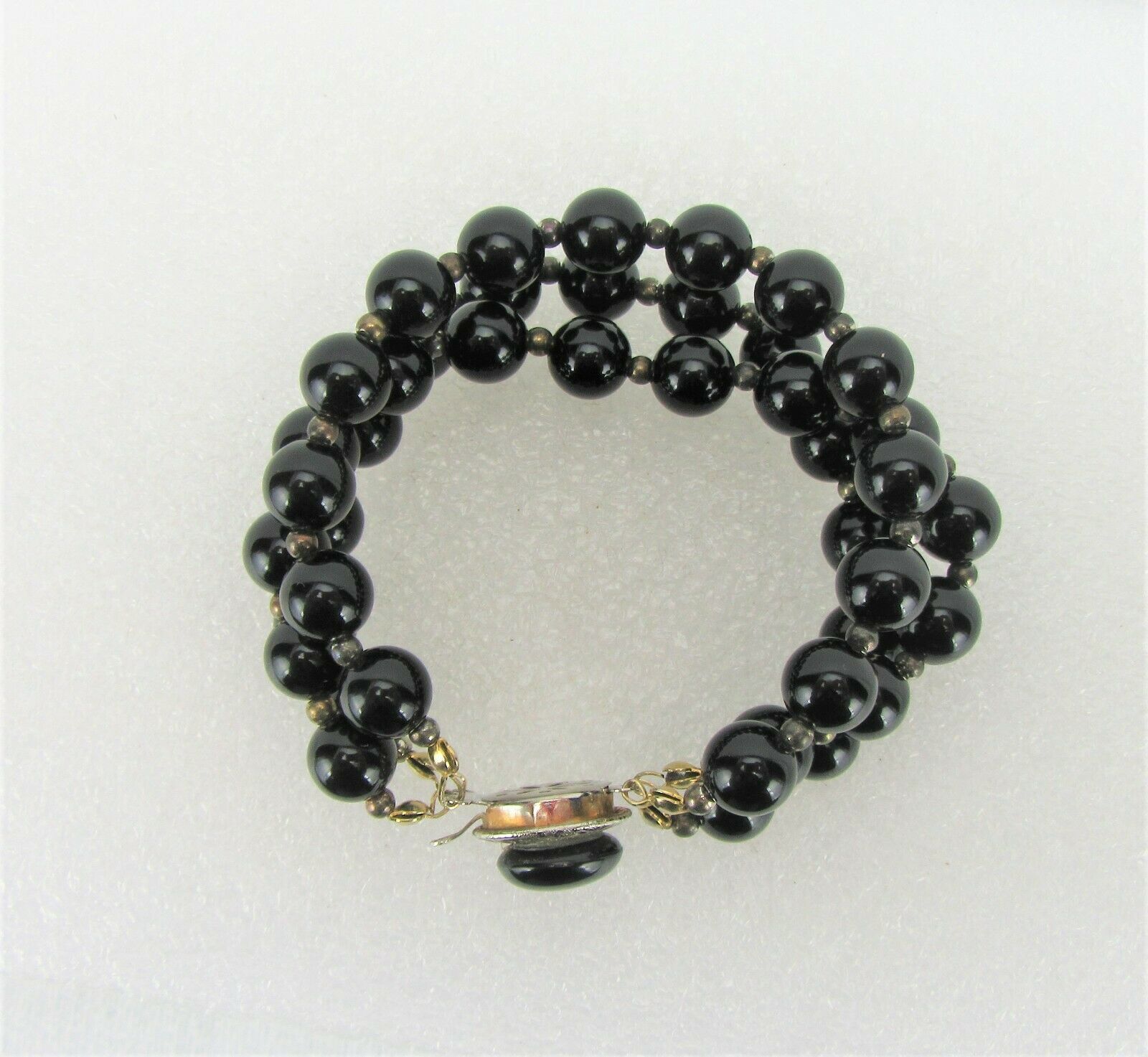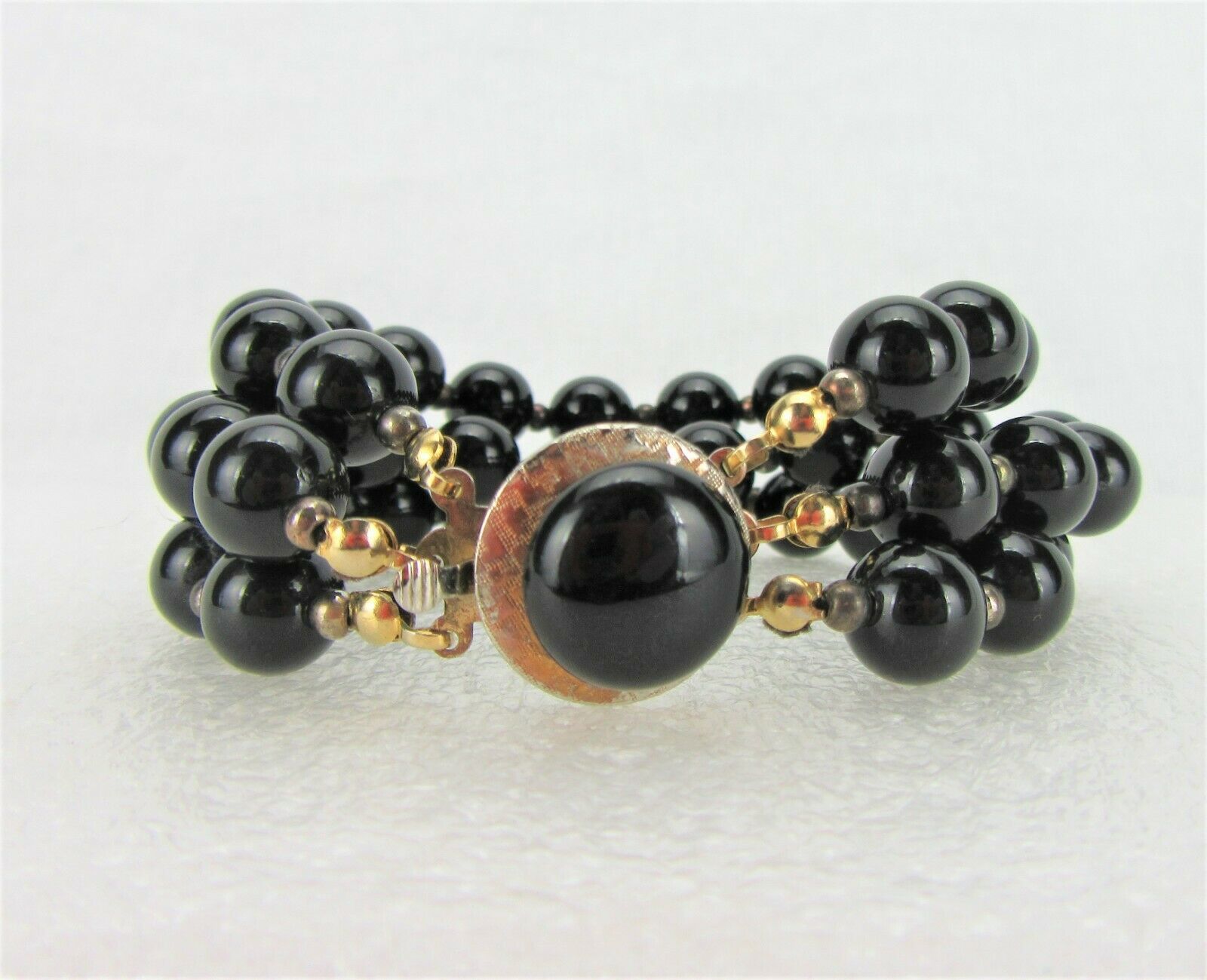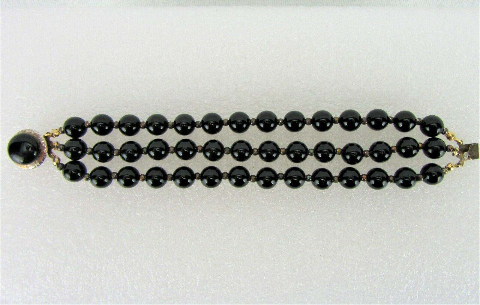 Vintage Costume Jewelry, Triple Strand, Black Beaded Bracelet, Elegant BCLT33 Vintage Beaded Bracelet