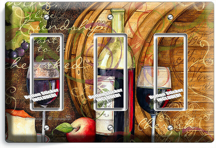 FRENCH MERLOT WINE BOTTLE BARREL CHEESE 3 GFCI LIGHT SWITCH PLATES KITCHEN DECOR