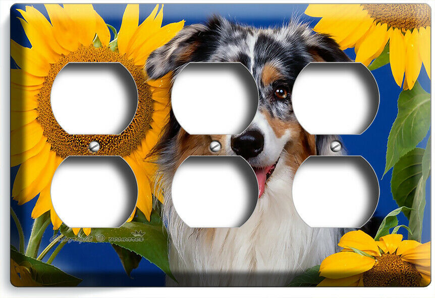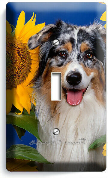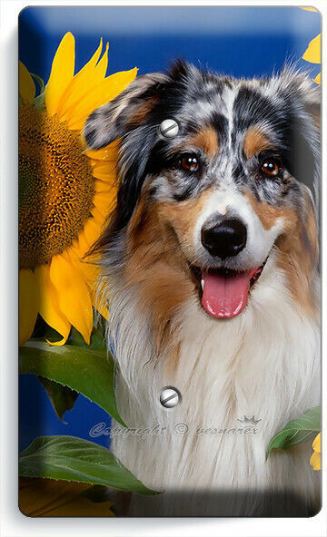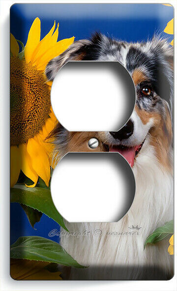 COLLIE DOG IN SUNFLOWERS LIGHT SWITCH OUTLET WALL COVER GROOMING PET SALON DECOR
