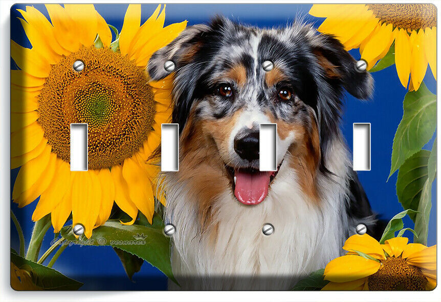 COLLIE DOG IN SUNFLOWERS LIGHT SWITCH 4 GANG WALL COVER GROOMING PET SALON DECOR