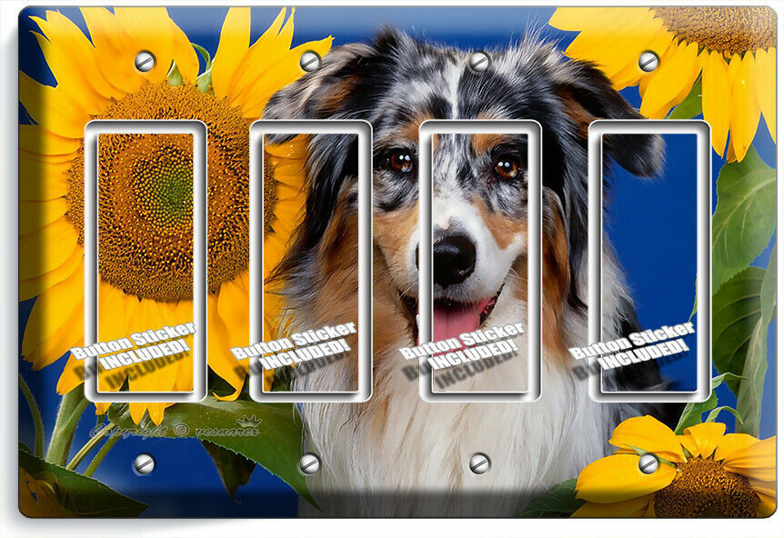 COLLIE DOG IN SUNFLOWERS LIGHT SWITCH 4 GFCI WALL COVER GROOMING PET SALON DECOR